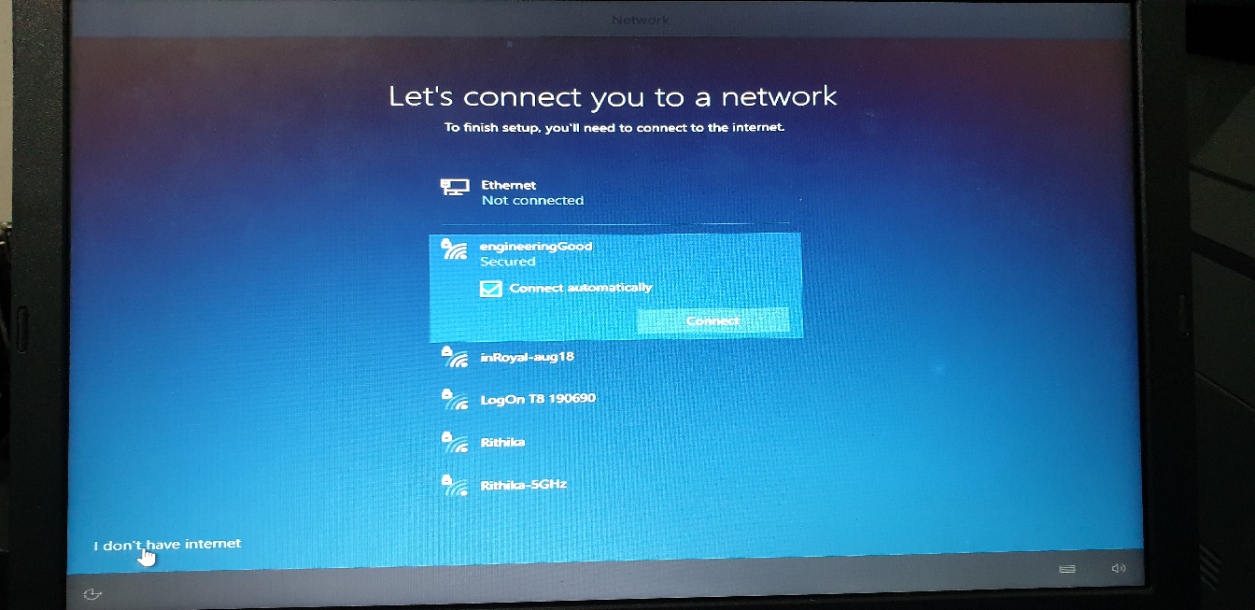 Please Select "I don't have Internet" first