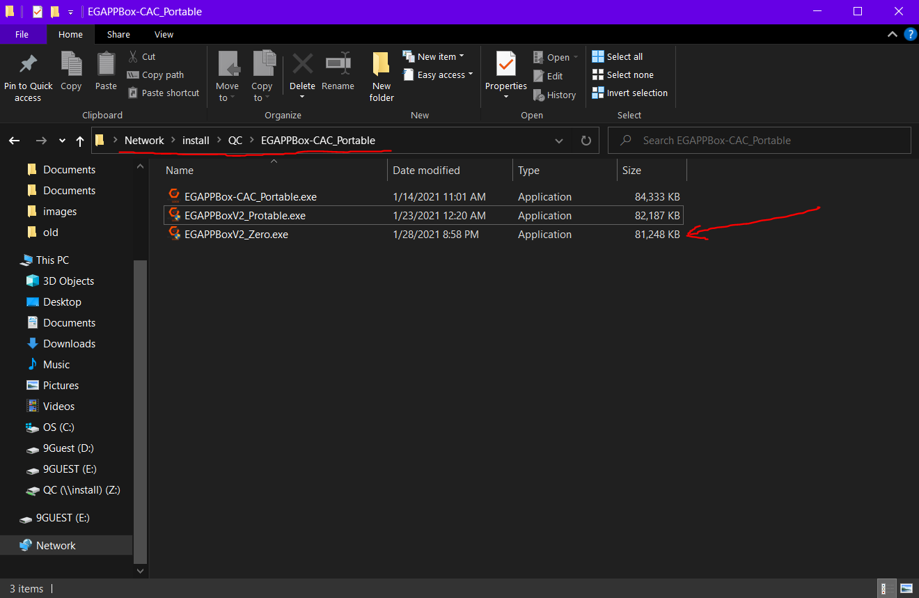 Get to the "//install" directory and run "EGAPPBoxV2_Zero.exe" in EGAPPBox-CAC_Portable folder